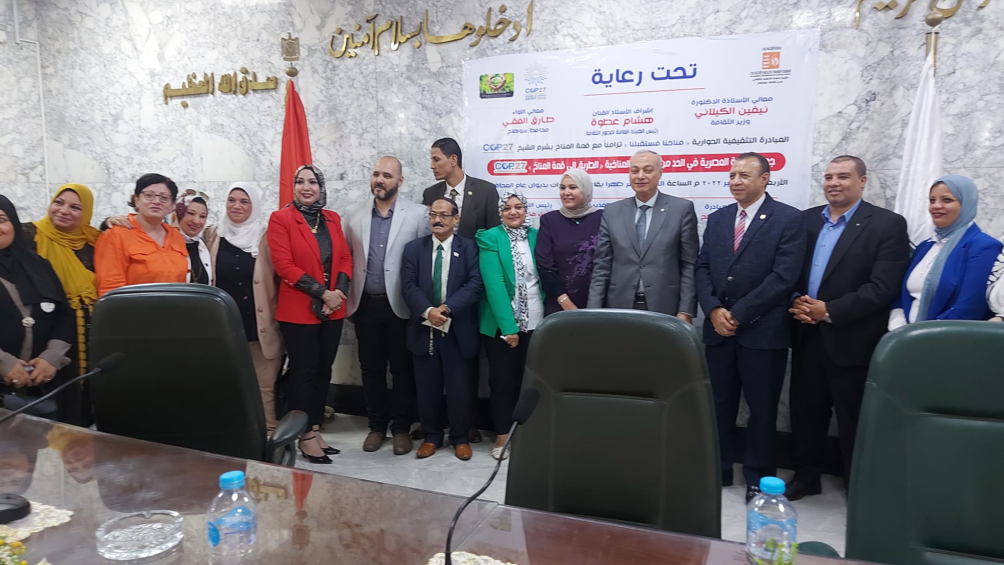 استاذ دكتور /حمدى حسانين المشرف على كلية الدراسات العليا والبيئة ومدير وحدة الاستدامة بالجامعة( الغازات الدفيئه ودورها فى الاحتباس الحرارى )